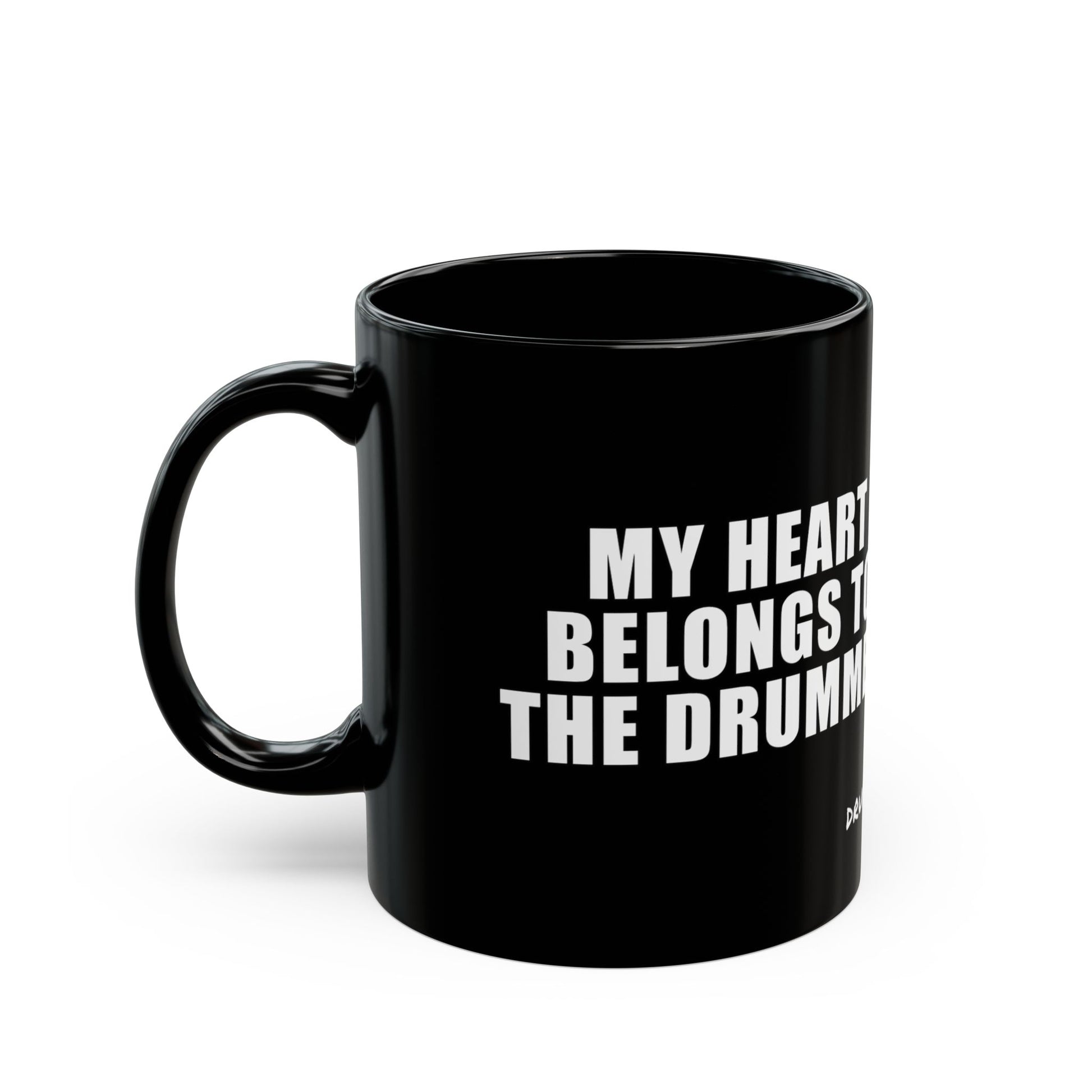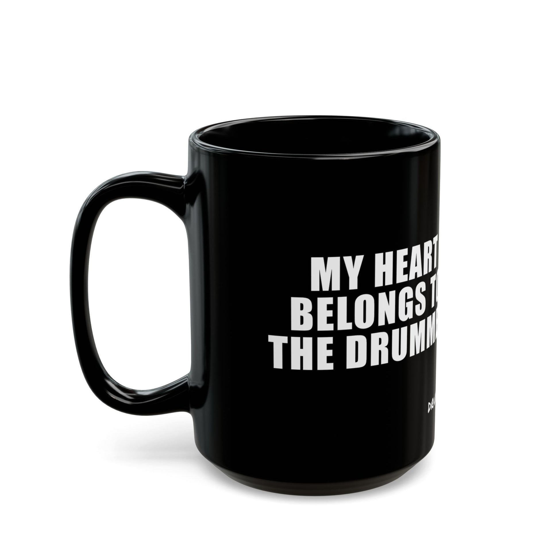 Black Ceramic Mug — “My Heart Belongs to Drummer…Send Help” Drummer Gift (11oz & 15oz)