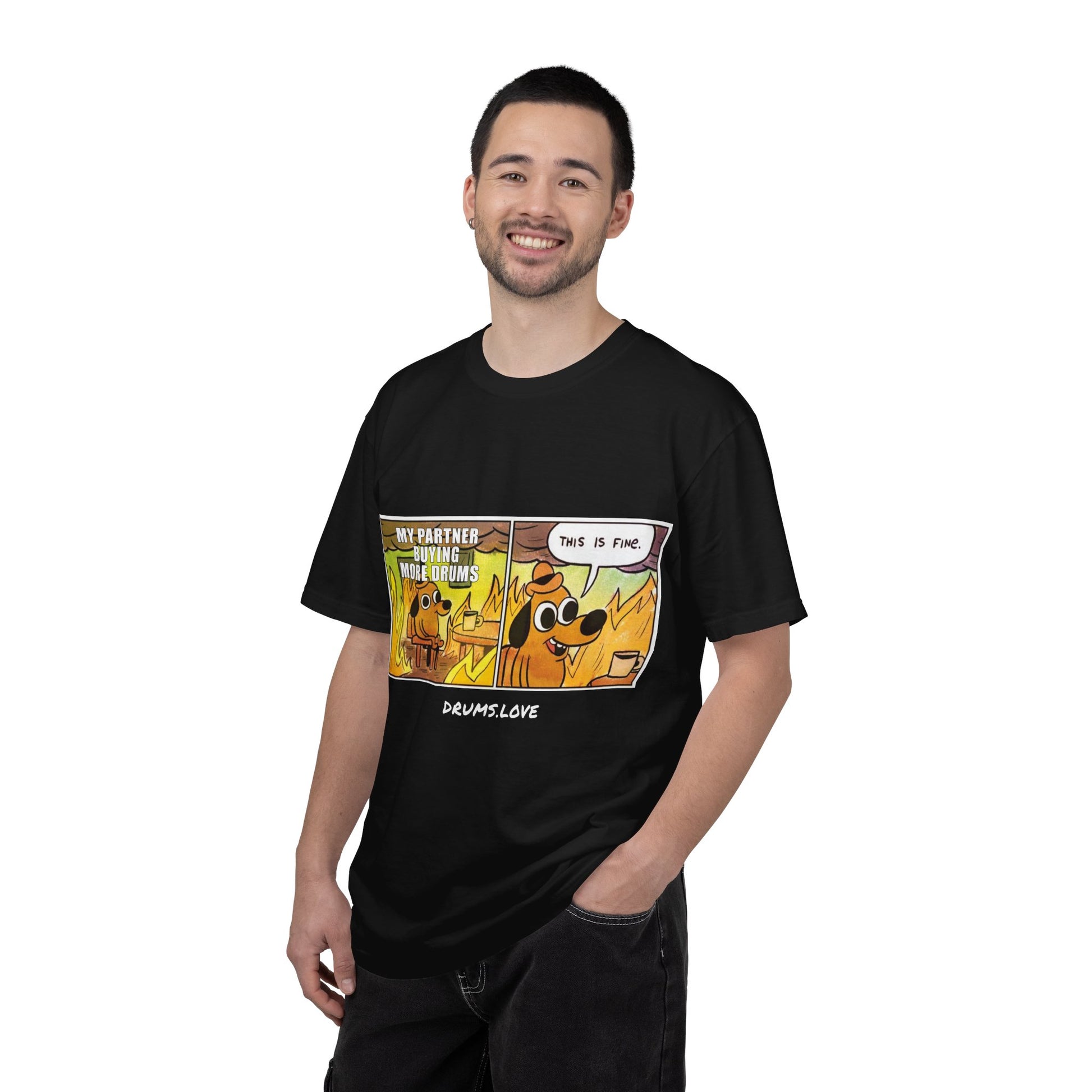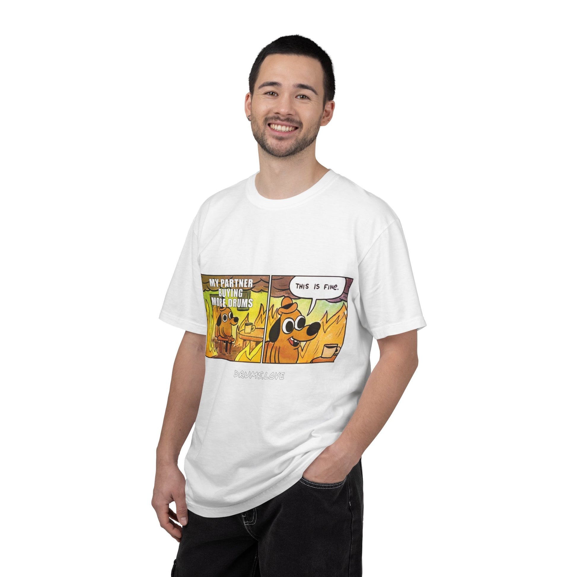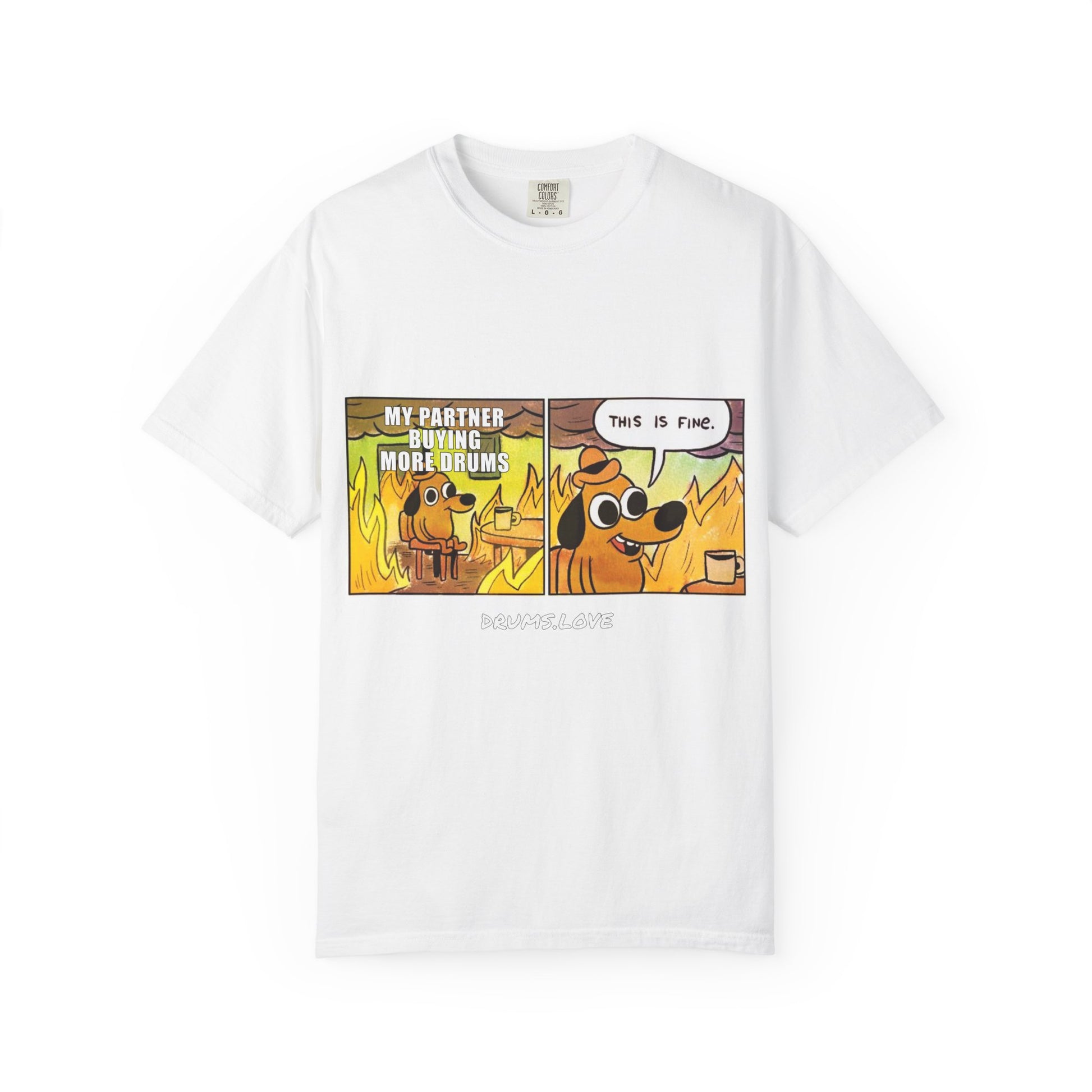 This Is Fine T-Shirt — "My Partner Is Buying More Drums" Comic Tee - Valentine's Day Tee