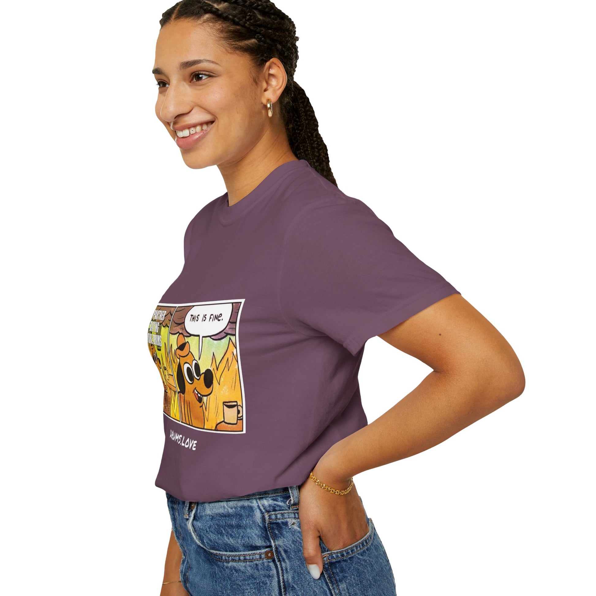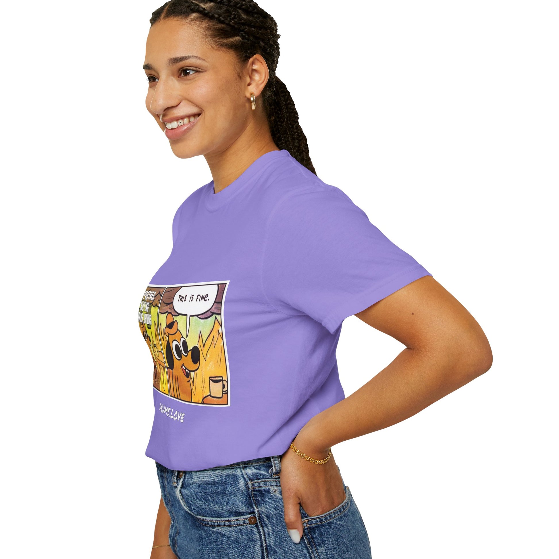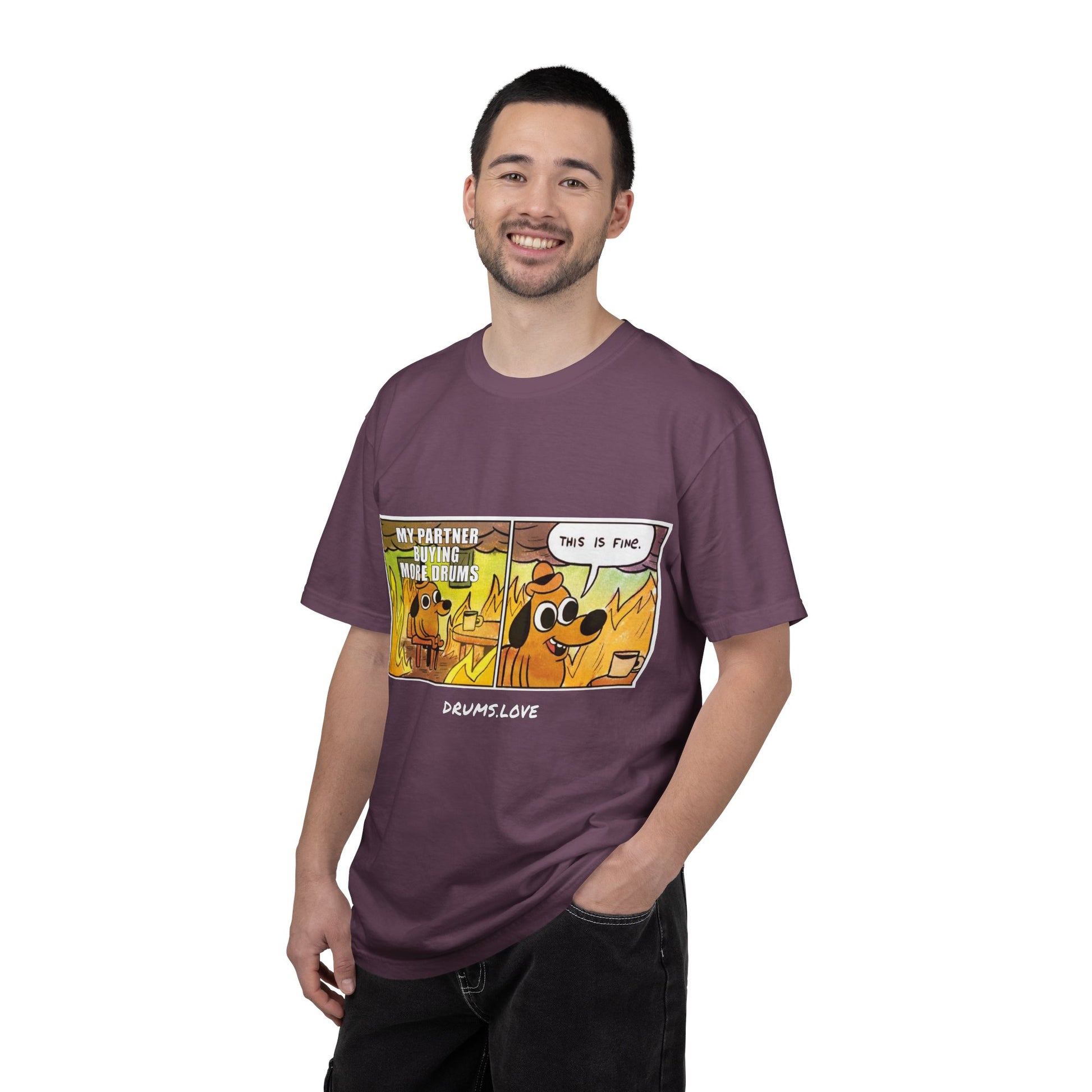This Is Fine T-Shirt — "My Partner Is Buying More Drums" Comic Tee - Valentine's Day Tee